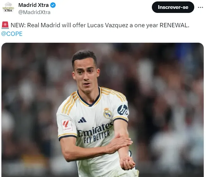 A situação de Vázquez com o Real Madrid é de um contrato que vai até julho de 2024. Ele, que é ídolo, já que é multicampeão pelo clube, faz parte de um grupo de jogadores que estão em fim de contrato, como, por exemplo, Modric.